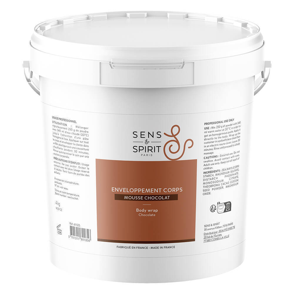 Vigorously mix 200g of powder with 300ml of hot water until you obtain a homogeneous and smooth paste. Apply to the entire body and wrap the client in plastic wrap then an electric blanket.